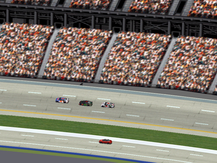 TALLADEGA SUPERSPEEDWAY (5/19/2001) - Temp Report - The race starts out with all the Speedlan members running in the top five positions and dicing it up for the lead until lap 9 when the first caution come out. This was caused by the #77 car spinning out by himself. On lap 10 Coyote and Speed came in to pit with the #77, #5 and the #26 car all taking on new rubber and fuel. On the re-start Jay who was in 1st, Bob in 2nd and Stenzo in 3rd place got ready to go back to racing on lap 12, But as the pace car rolled down pit row the three of them pasted the pace car. They would all be black flagged.(as seen above)