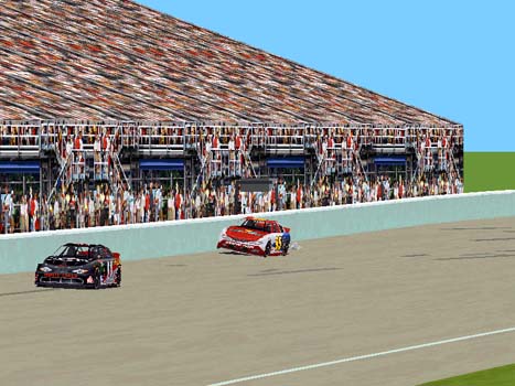 This last yellow allows SPEED to close up on the COYOTE who was leading the race. But COYOTE was on old tire and SPEED had new tires. Then on lap 86 as COYOTE was chasing SPEED, He must have hit sum oil on the track and slid into the outside wall losing a tire.(as seen above) This would let SPEED win his last race of the year at a track he does not like. The rest of the Speedlan boys having a bad day, Finish 28th, 29th and 30th.
